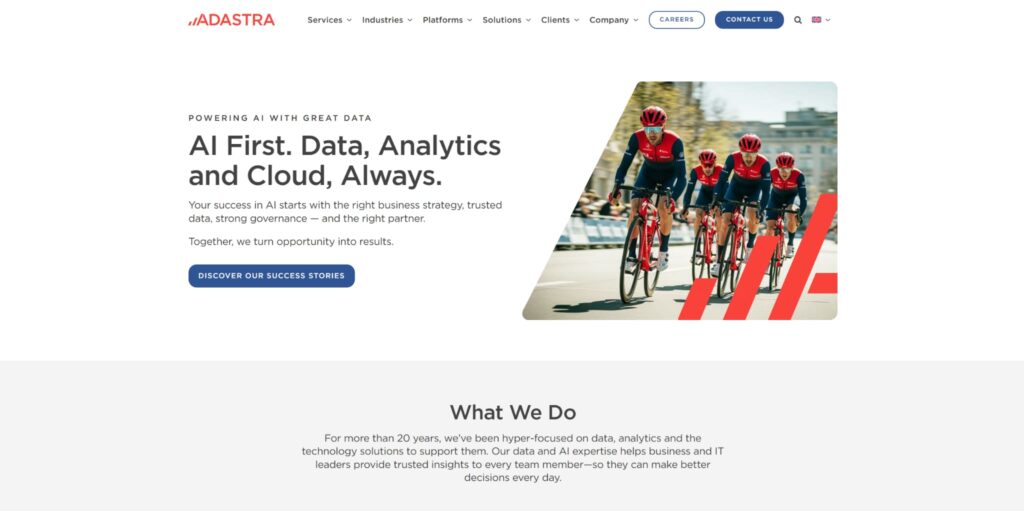 Adastra specializes in data engineering, analytics, and cloud transformation. They align tightly with AWS for building data platforms and AI-driven analytics systems. Their work emphasizes data monetization and enterprise insights, not just storage.